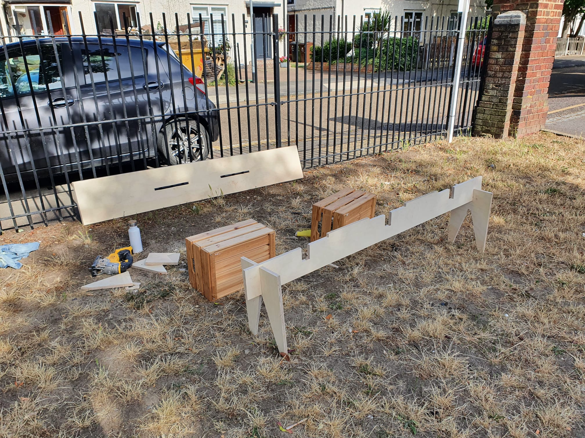 It was made using a mix of hand and power tools, propped up on crates out in East London’s green spaces over the course of a weekend. Curious passersby stopped to ask questions and offer thoughts on the next iteration, but universally were happy to see people working with their hands shaping common materials into something as tangible as a bench.